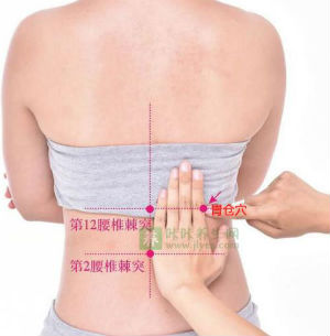 胃仓,经穴名。出《针灸甲乙经》。属足太阳膀胱经。在背部,当第12胸椎棘突下,旁开3寸。布有第十一胸神经后支的外侧支和肋下动、静脉后支。主治胃脘痛,腹胀满,饮食不下,脊背疼痛等。斜刺0.3-0.5寸。艾炷灸5-10壮;或艾条灸10-20分钟。
